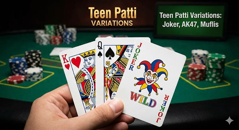 Teen Patti variations share a common base structure of three card distribution but modify rules around wild cards, ranking adjustments, side bets, and betting mechanics. Classic Teen Patti involves three cards per player with escalating betting rounds. Variations such as Joker, AK47, Muflis, and 999 alter ranking hierarchy or introduce wildcard mechanics that shift probability distribution.