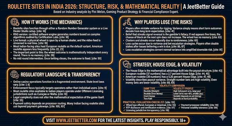 Detailed analysis of roulette sites in India 2026. Covers house edge, RTP, legality, volatility and platform transparency in a calm expert review.