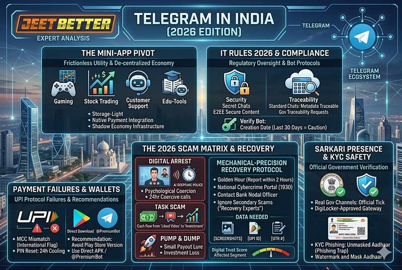 In 2026, Telegram has moved beyond being a simple messaging alternative to become a critical infrastructure layer in India. For users, businesses, and the gaming community, it offers a decentralized ecosystem through “Mini Apps” and native payment integration. However, this growth has invited unprecedented regulatory scrutiny under the IT Rules 2026 and the Cinematograph (Amendment) Act 2023. Users now face a complex landscape of “Digital Arrest” scams and sophisticated financial “Task Scams” that require expert navigation. This guide, written from the perspective of a financial and technology analyst, provides a strategic roadmap for leveraging Telegram safely in the current Indian digital climate.